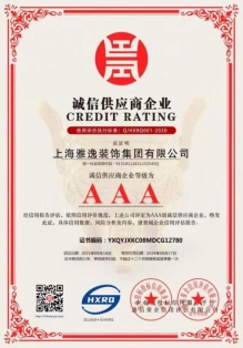 今天的裝飾精品將成為明天的文化遺產(chǎn),文化、環(huán)保、科技的高含量,成就了今天的上海雅逸裝飾集團(tuán)。“把紅旗插到山頂上”是我們確保工程優(yōu)勝的承諾,讓業(yè)主放心是我們做工程一絲不茍的態(tài)度與決心,創(chuàng)新、精品、誠(chéng)信、共贏是我們承擔(dān)責(zé)任、與市場(chǎng)同發(fā)展的企業(yè)理念。