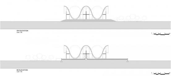 建筑建造基于對(duì)混凝土承載力的細(xì)微計(jì)算,房頂自支撐的每一處波動(dòng)都劇烈的朝向地面,再用力得向上躍起,建筑立面通過(guò)十字形構(gòu)造支撐,用透明玻璃墻面裝飾。