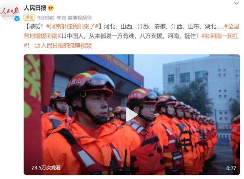 汛情發(fā)生后,河南省委省政府、鄭州市委市政府主要負(fù)責(zé)同志一線調(diào)度,已調(diào)派武警官兵、解放軍指戰(zhàn)員、消防救援隊(duì)伍全力搶險(xiǎn)救援,救援工作仍在進(jìn)行中。