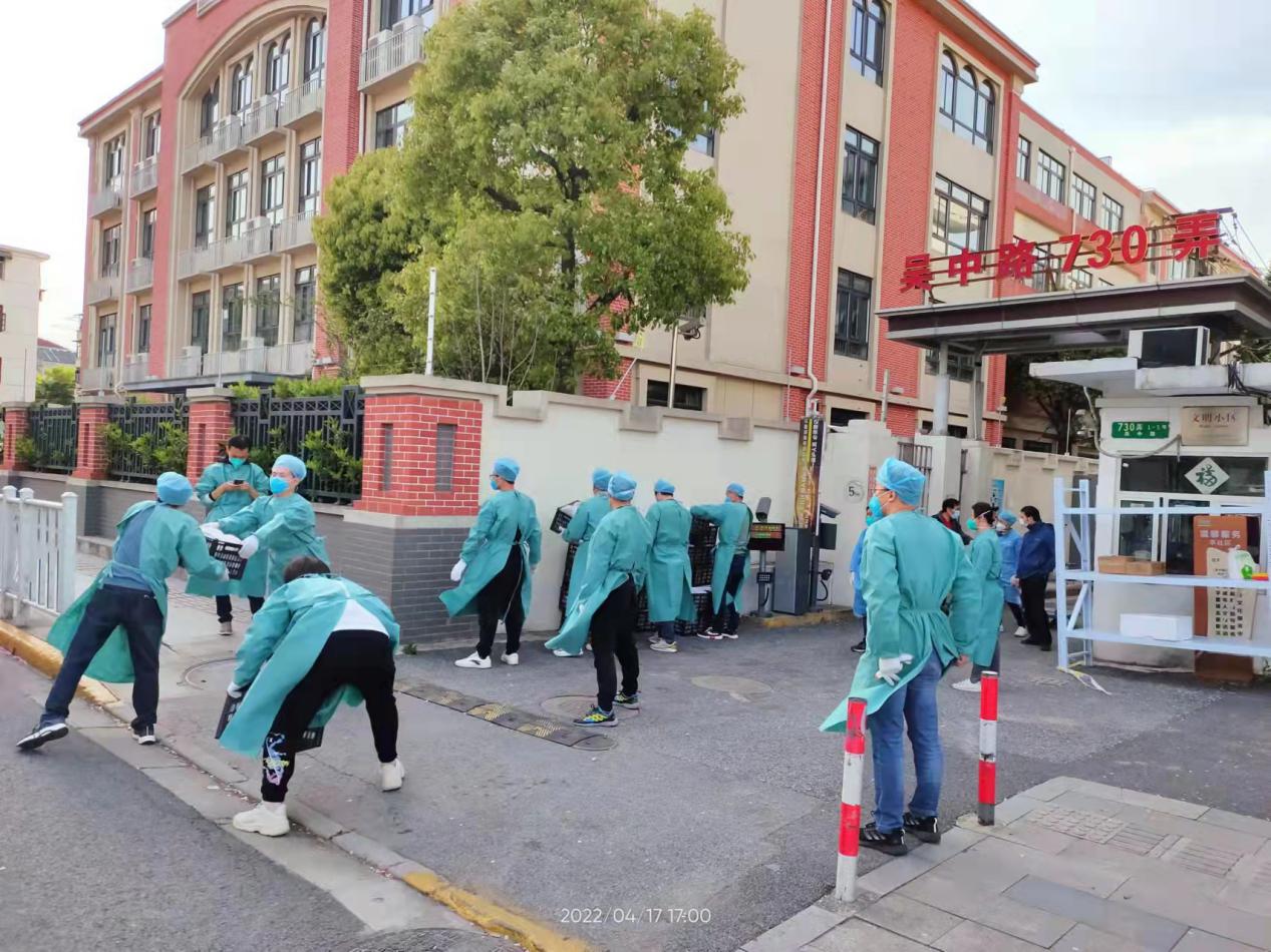 雅逸志愿者小分隊(duì)身穿藍(lán)色防護(hù)服